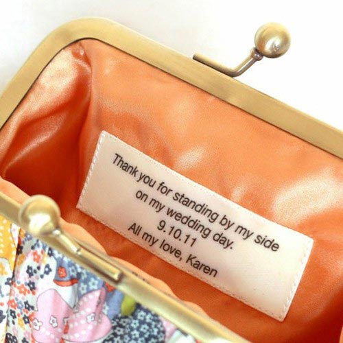 What better way to say thank you to your maid of honour and bridesmaids than with a simple note stitched into the lining of a pretty clutch bag.