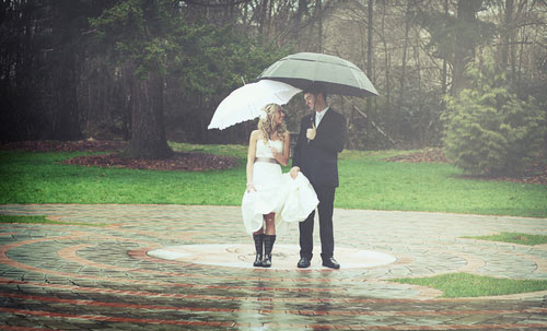 Having a wedding on the off season can save you loads pennies but it also means you may be caught in a shower.