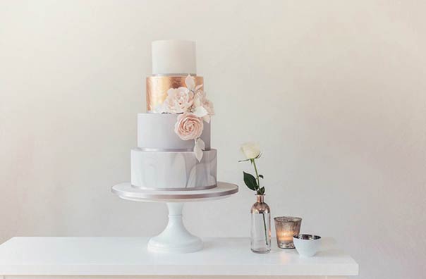 Metallics were on trend for 2016 and are set to stay for 2017. Trending for 2017 are “naked cakes”/translucent cakes. “Instead of totally bare tiers, translucent cakes have a thin veil of frosting with just a bit of the cake showing,” according to The Knot. “Typically iced in buttercream, these sweet delights are topped with fresh flowers or in-season fruits that hint at the flavors of the cake filling.”