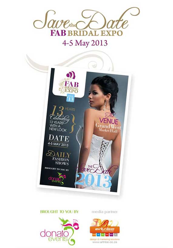 The glamorous FAB Bridal Expo is hosted at the well-known Grand West Market Hall and will celebrate its 13th anniversary in 2013. A visit to this fabulous exhibition will inspire those planning a wedding, birthday party or corporate event to turn their function into a memorable and spectacular event. Various service providers will be on show all under one roof, covering just about all the services and products you could possibly require to host a successful event.